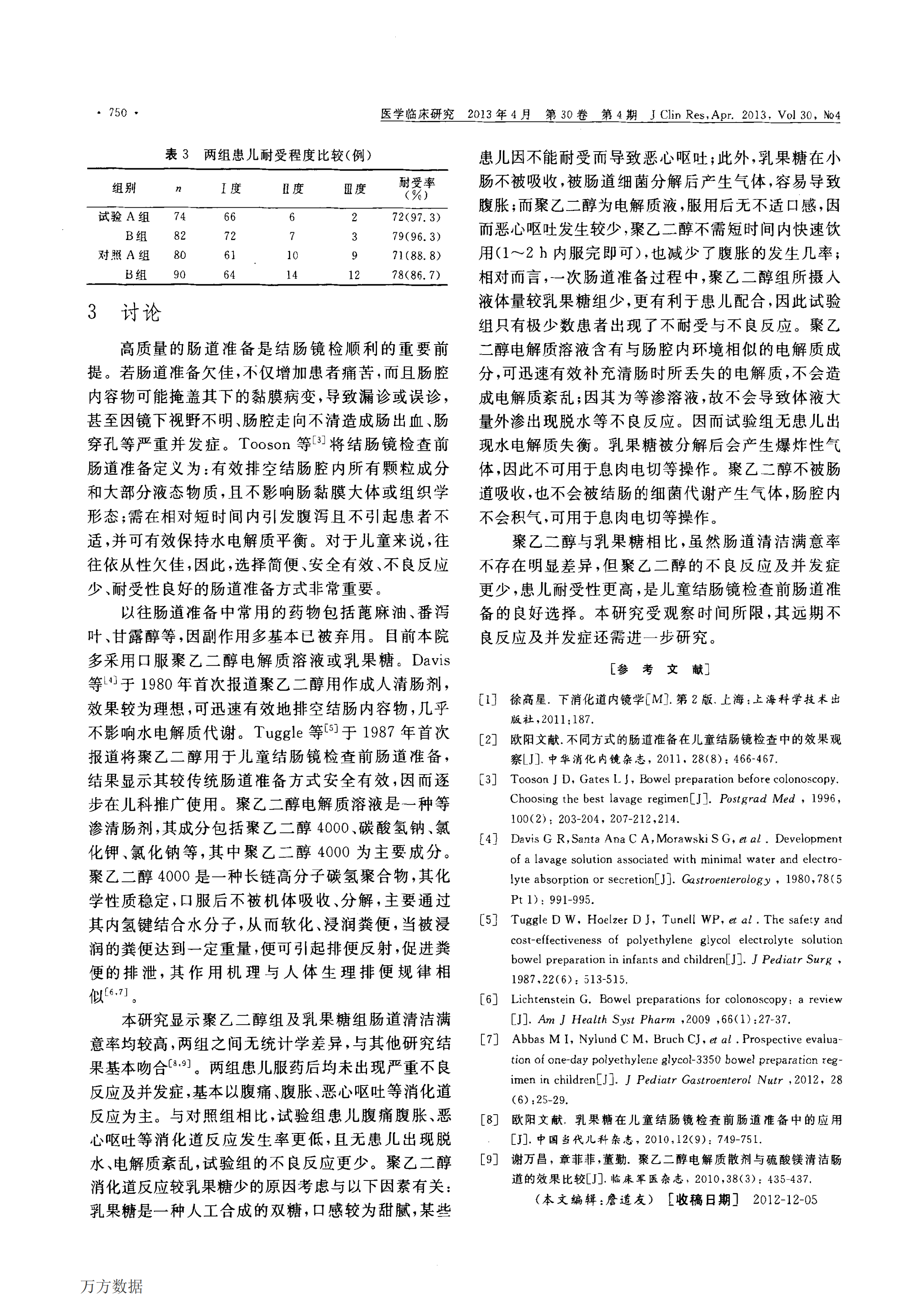 【舒泰清】2013 聚乙二醇電解質溶液在兒童結腸鏡檢查前腸道準備中的應用
